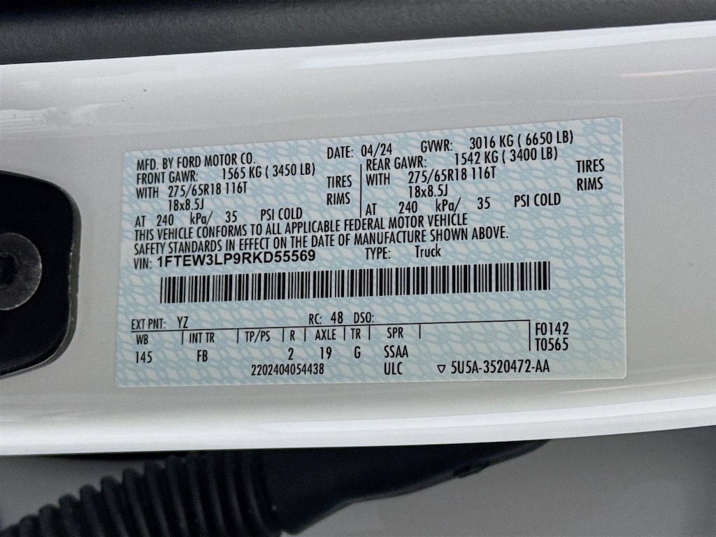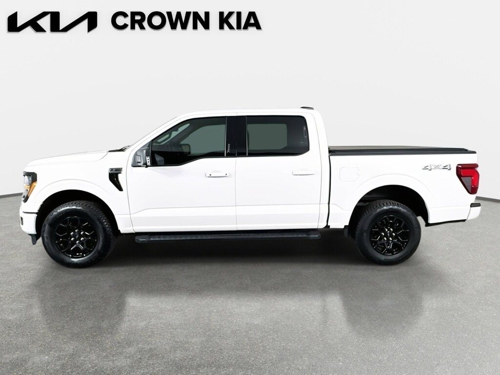 This 2024 Ford F-150 XLT in Oxford White features: 4WD, 3.55 Axle Ratio, 4-Wheel Disc Brakes, 400W Cab & Bed Outlets, 6 Speakers, 6" Black Running Boards, ABS brakes, Adaptive Cruise Control w/Stop & Go, Air Conditioning, Alloy wheels, AM/FM radio: SiriusXM with 360L, Auto High-beam Headlights, Auto-Dimming Rear-View Mirror, Auto-dimming Rear-View mirror, Automatic temperature control, Black Exterior Badging, Black Grille, Body-Color Front & Rear Bumpers, Brake assist, Bumpers: chrome, Chrome wheels, Cloth 40/20/40 Front Seat, Cloth 40/Console/40 Front Seats, Compass, Dark Interior Appliques, Delay-off headlights, Driver door bin, Driver vanity mirror, Dual front impact airbags, Dual front side impact airbags, Electronic Stability Control, Emergency communication system: SYNC 4 911 Assist, Equipment Group 302A Mid, Floor Shifter, Ford BlueCruise Equipped (90-Day Trial), Front anti-roll bar, Front Center Armrest w/Storage, Front dual zone A/C, Front fog lights, Front reading lights, Front wheel independent suspension, Fully automatic headlights, Gray Box Side Decal, GVWR: 6,650 lbs Payload Package, Heated door mirrors, Heated Front Seats, Illuminated entry, Intelligent Access w/Push Button Start, LED Sideview Mirror Spotlights, Low tire pressure warning, Navigation system: Connected Navigation, Occupant sensing airbag, Outside temperature display, Overhead airbag, Overhead console, Panic alarm, Passenger door bin, Passenger vanity mirror, Power door mirrors, Power driver seat, Power Glass Heated Sideview Mirrors, Power steering, Power windows, Power-Sliding Rear Window, Radio data system, Radio: AM/FM SiriusXM w/360L, Rear reading lights, Rear step bumper, Rear window defroster, Remote keyless entry, Remote Start System w/Remote Tailgate Release, Security system, Speed control, Speed Sign Recognition, Split folding rear seat, Steering wheel mounted audio controls, SYNC 4 w/Enhanced Voice Recognition, Tachometer, Telescoping steering wheel, Tilt steering wheel, Traction control, Trip computer, Unique Sport Cloth 40/Console/40 Front-Seats, Variably intermittent wipers, Voltmeter, Wheel Well Liner, Wheels: 18" Chrome-Like PVD, Wheels: 18" Gloss Black, XLT Black Appearance Package, 4WD.
