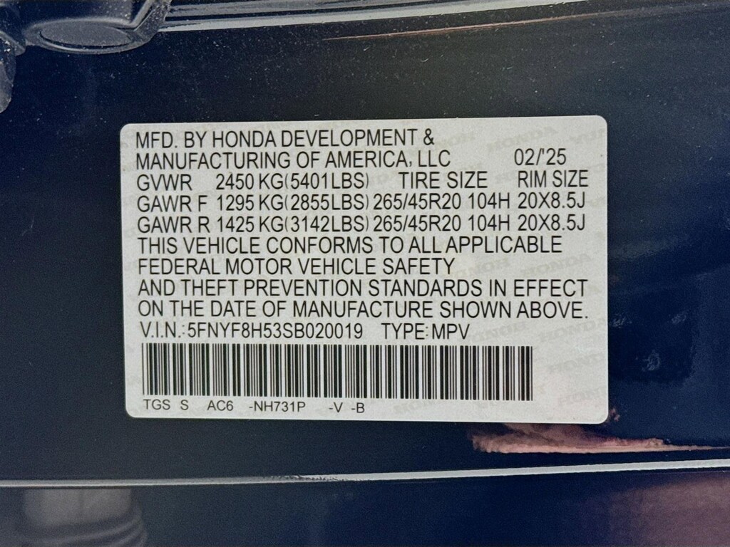 - 5FNYF8H53SB020019