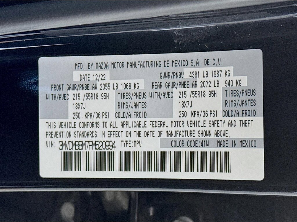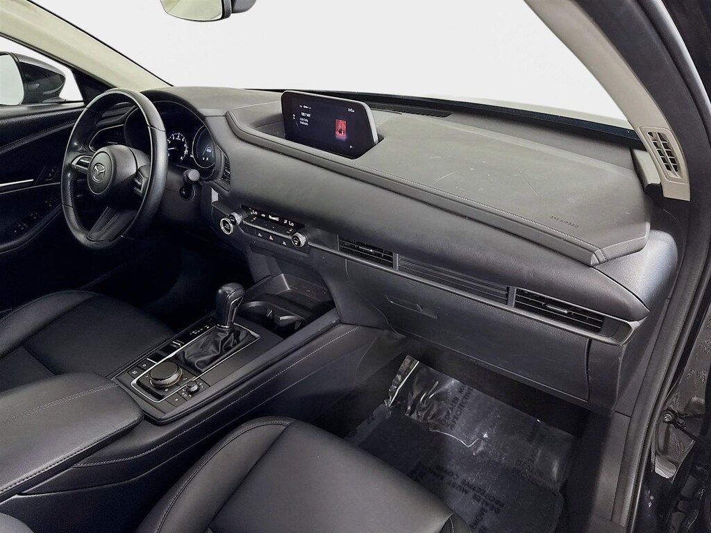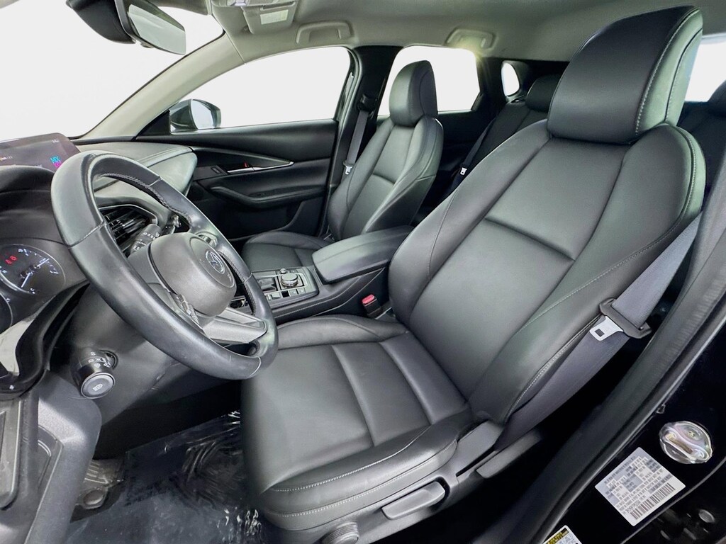 This 2023 Mazda CX-30 2.5 S Select Package in Jet Black Mica features: 4-Wheel Disc Brakes, 4.095 Axle Ratio, 8 Speakers, ABS brakes, Air Conditioning, Alloy wheels, AM/FM radio, AppLink/Apple CarPlay and Android Auto, Auto High-beam Headlights, Automatic temperature control, Brake assist, Bumpers: body-color, Compass, Delay-off headlights, Driver door bin, Driver vanity mirror, Dual front impact airbags, Dual front side impact airbags, Electronic Stability Control, Emergency communication system: Mazda Connected Services (3-year complimentary trial included), Exterior Parking Camera Rear, Front anti-roll bar, Front Bucket Seats, Front Center Armrest, Front dual zone A/C, Front reading lights, Front wheel independent suspension, Fully automatic headlights, Illuminated entry, Knee airbag, Leather Shift Knob, Leather steering wheel, Leatherette Seat Trim, Low tire pressure warning, MAZDA CONNECT Infotainment System, Occupant sensing airbag, Outside temperature display, Overhead airbag, Panic alarm, Passenger door bin, Passenger vanity mirror, Power door mirrors, Power steering, Power windows, Radio data system, Radio: AM/FM/HD Audio System, Rain sensing wipers, Rear seat center armrest, Rear side impact airbag, Rear window defroster, Rear window wiper, Remote keyless entry, Speed control, Speed-sensing steering, Split folding rear seat, Spoiler, Steering wheel mounted audio controls, Tachometer, Telescoping steering wheel, Tilt steering wheel, Traction control, Trip computer, Turn signal indicator mirrors, Variably intermittent wipers, Wheel Locks, Wheels: 18" x 7J Aluminum Alloy. Clean CARFAX. 26/33 City/Highway MPG